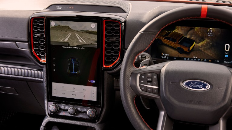 Interiér Ranger Raptoru prošel kompletním přepracováním. Nabízí plně digitální rozhraní, specifické dekorativní prvky a potahy s logem Raptor.