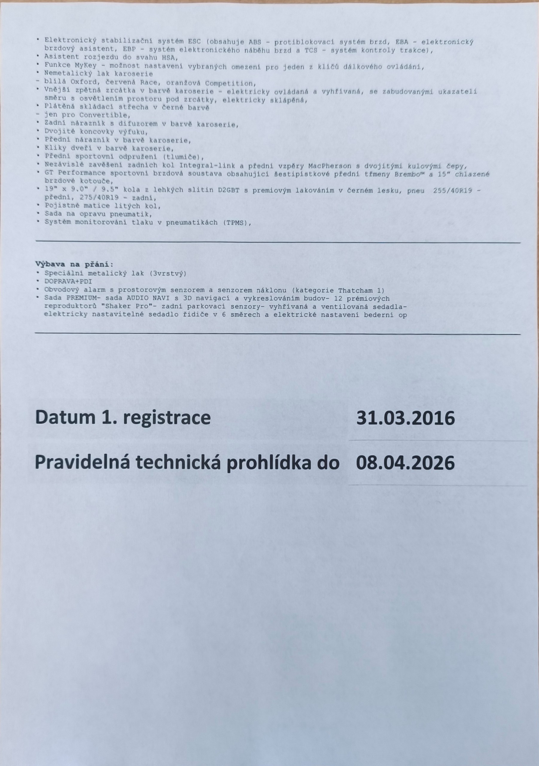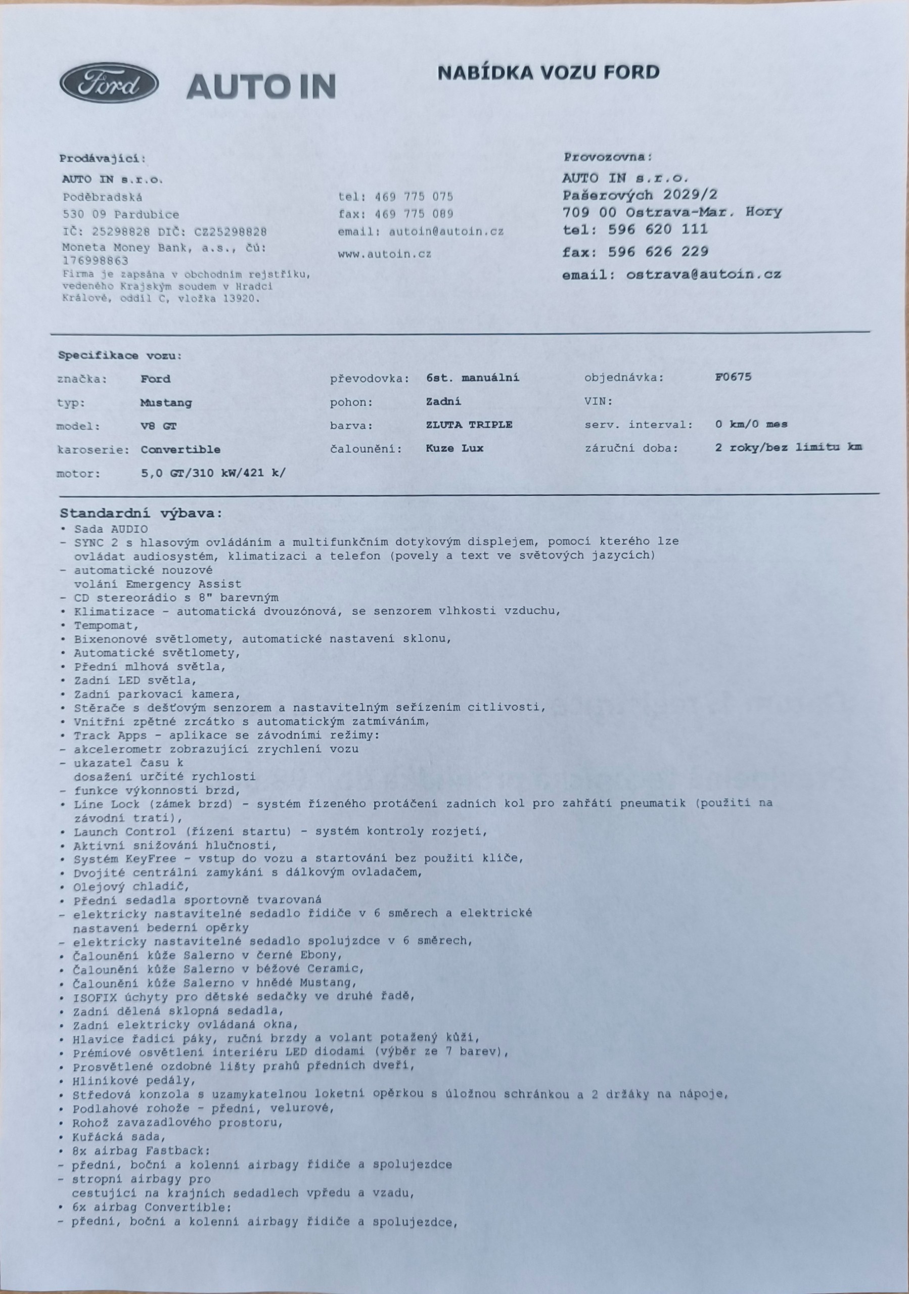 Ford Mustng Convertible 5,0 V8 310kW ČR, 1. Majitel