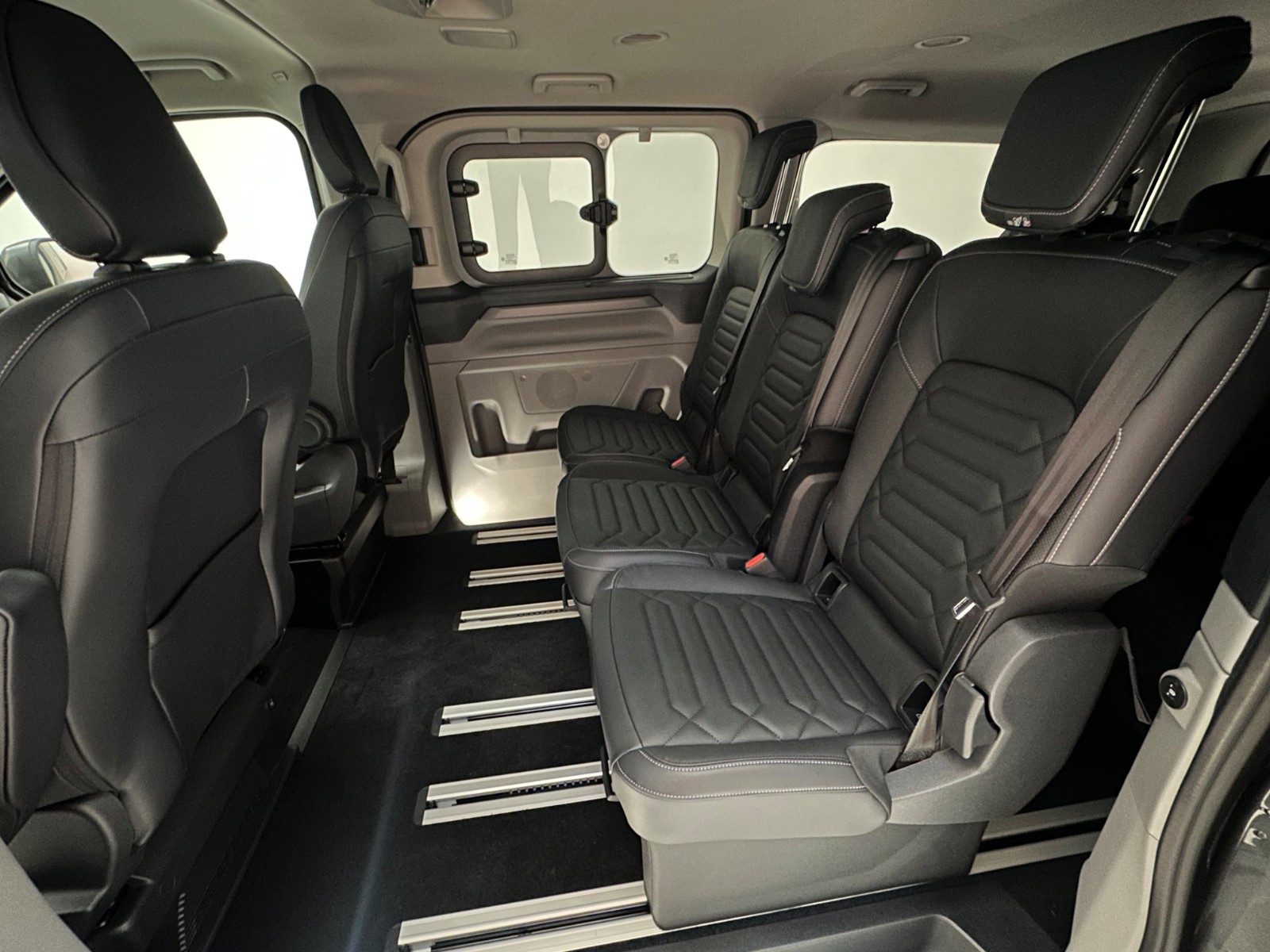 - Sada zadních sedadel 14- boční posuvné dveře vpravo a vlevo vč. slunečních clony, kolejnicový systém pro uchycení zadních sedadel (samostatné kolejnice pro každou řadu), tři samostatná sedadla v druhé řadě s úložným prostorem