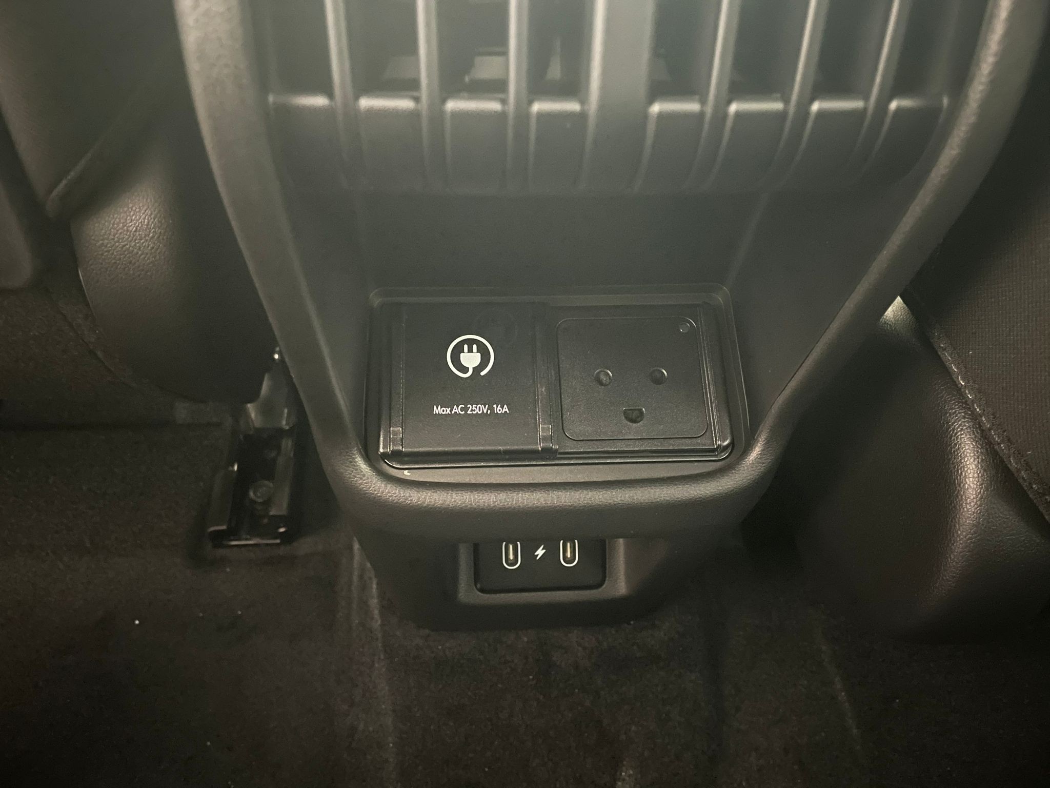 - Bezdrátové nabíjení pro jeden mobilní telefon (pouze pro kompatibilní přístroje podporující standard (Qi) Možnost napájení elektrických spotřebičů z trakčního akumulátoru V2L, vnitřní zásuvka s výkonem 3,6 kW USB konektor pro dobíjení vpředu